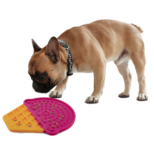 Tällä nuolumatolla voit hemmotella koiraasi maukkailla herkuilla. Jäätelön muotoinen nuolumatto voidaan kiinnittää mihin tahansa pintaan pohjassa olevien käytännöllisten imukuppien ansiosta. Tuotteen kanssa voi käyttää sekä kuiva- että märkäruokaa. Matolle voi esimerkiksi levittää jogurttia tai maapähkinävoita koiran ajatusten kääntämiseksi pois pesun tai harjauksen aikana. Matolta voi myös tarjota tavallista ruokaa ahmimisen vähentämiseksi.