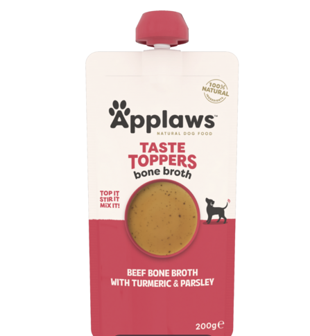 LUONNOLLINEN JA MAISTUVA LISÄ RUOKINTAAN. Applaws Taste Toppers on valmistettu täysin luonnollisista raaka-aineista ilman lisäaineita. Naudan luuliemi tarjoaa maistuvan lisän kuiva- tai märkäruoan joukkoon ja houkuttelee myös nirsoja koiria syömään paremmin.