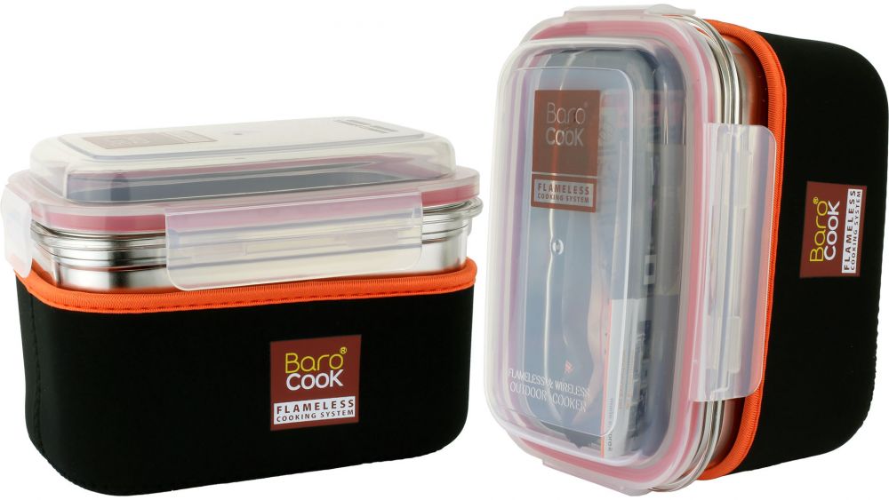 Kuumaa ruokaa ilman keitintä, kaasua tai tulta? Barocook Rectangular Flameless Cookware System 1,2 L tarjoaa älykkään, turvallisen ja liekittömän tavan lämmittää ateriat missä tahansa. Tämä patentoitu järjestelmä hyödyntää veden ja lämpöpaketin välistä reaktiota, joka tuottaa tehokasta höyryä ja lämmittää ruoan jopa 98 asteeseen. Täydellinen retkeilyyn, kalastukseen, metsästykseen, selviytymistilanteisiin tai vaikkapa työpaikan lounastauolle.Käyttö on vaivatonta: aseta lämpöpaketti ulkoastian pohjalle ja kaada siihen tarkasti annosteltu määrä vettä. Aseta sitten ruoka sisäastiaan ja sulje kansi. Lämpöreaktio käynnistyy heti ja ruoka lämpenee 40–60 minuutissa. Lämmön säilyvyys voi olla jopa kaksi tuntia, ja jopa -25 °C pakkasessa lämpö pysyy noin 1,5 tunnin ajan.