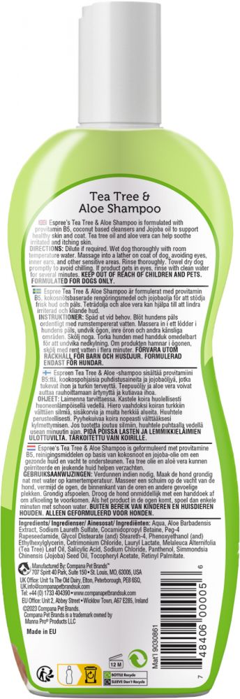 Tämä lääkinnällinen shampoo puhdistaa ihon tehokkaasti mutta hellävaraisesti poistaen lian, rasvan ja muut epäpuhtaudet. Espree Tea Tree & Aloe Medicated Shampoo sopii koirille, joilla on iho-ongelmia kuten ekseema, dermatiitti tai allergiset reaktiot. Se on ihanteellinen ratkaisu epämukavuuden lievittämiseen ja koiran ihon palauttamiseen luonnolliseen kuntoon.