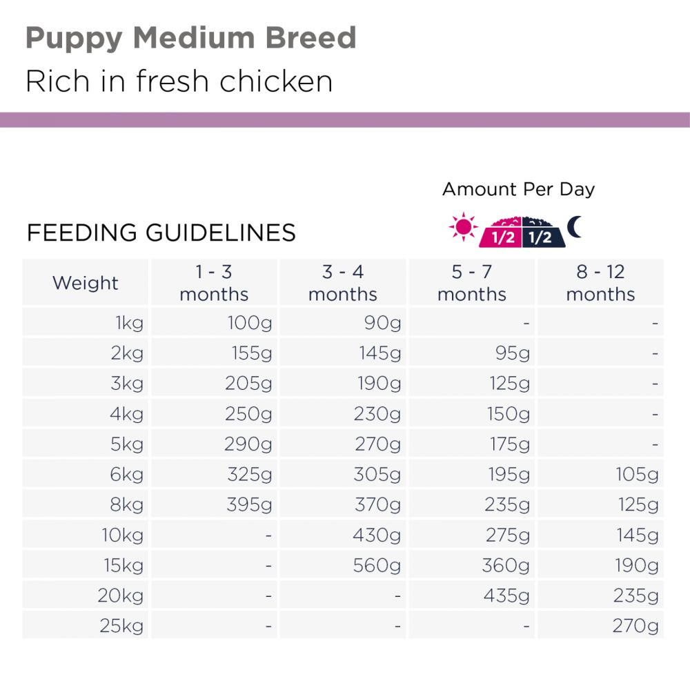EUKANUBA-kuivanappulat sisältävät runsaasti tuoretta kanaa ja sopivat erityisen hyvin keskikokoisten rotujen koiranpennuille eli 1–12 kuukauden ikäisille koirille. Tarkkaan valikoidut ainesosat muodostavat ainutlaatuisen ravinnon, joka tukee koiranpennun kasvua ja kehitystä. EUKANUBA-kuivaruoka sisältää DHA-rasvahappoja, jotka auttavat koiranpentua oppimaan paremmin, sekä kalsiumia, joka edistää luuston kehitystä.Kuivattu kana ja kalkkuna (24% sisältää kana 14%, luonnollinen tauriinin lähde glukosamiini, kondroitiinisulfaatti ja tauriini), tuore kana (15%), maissi, vehnä, kananrasva, kalajauho (luonnollinen tauriinin lähde omega-3-rasvahapot), riisi, ohra, kuivattu juurikasmassa (3%), maissisuurimot, kanakastike, kuivattu kokonainen muna, kivennäisaineet (sisältää natriumheksametafosfaatti 0.35%), kalaöljy (luonnollinen tauriinin lähde omega-3-rasvahapot), kuivattu panimohiiva (luonnollinen B-vitamiinien & seleenin lähde), frukto-oligosakkaridit (0.25%, luonnollinen prebiootti), mannaanioligosakkaridit (luonnollinen prebiootti).