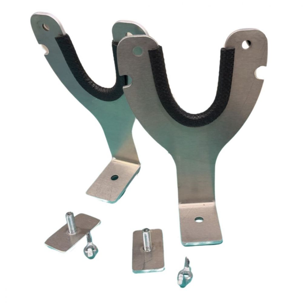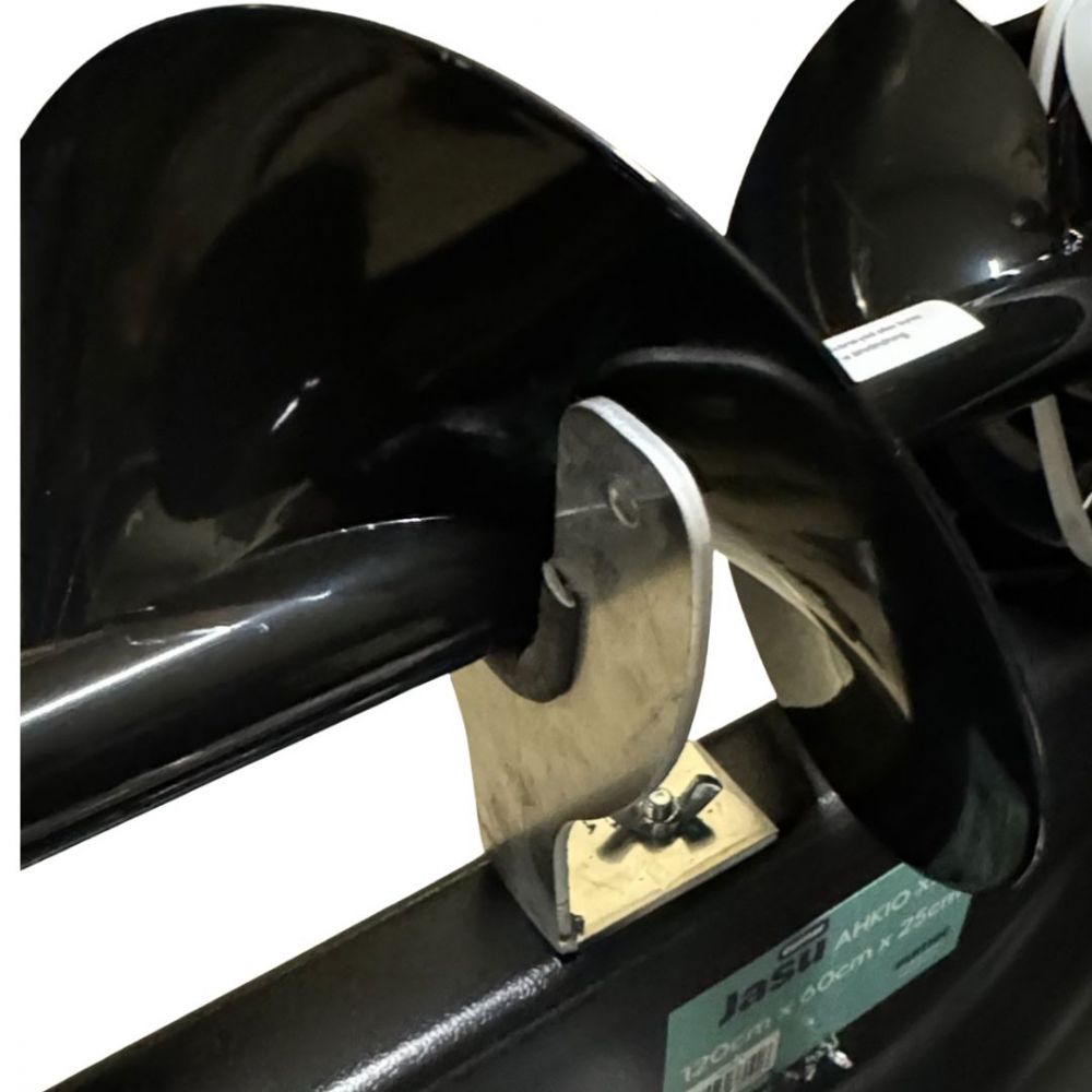 4. Kiinnitä teline ahkion reunaan kiertämällä siipimutterit tiukasti myötäpäivään.