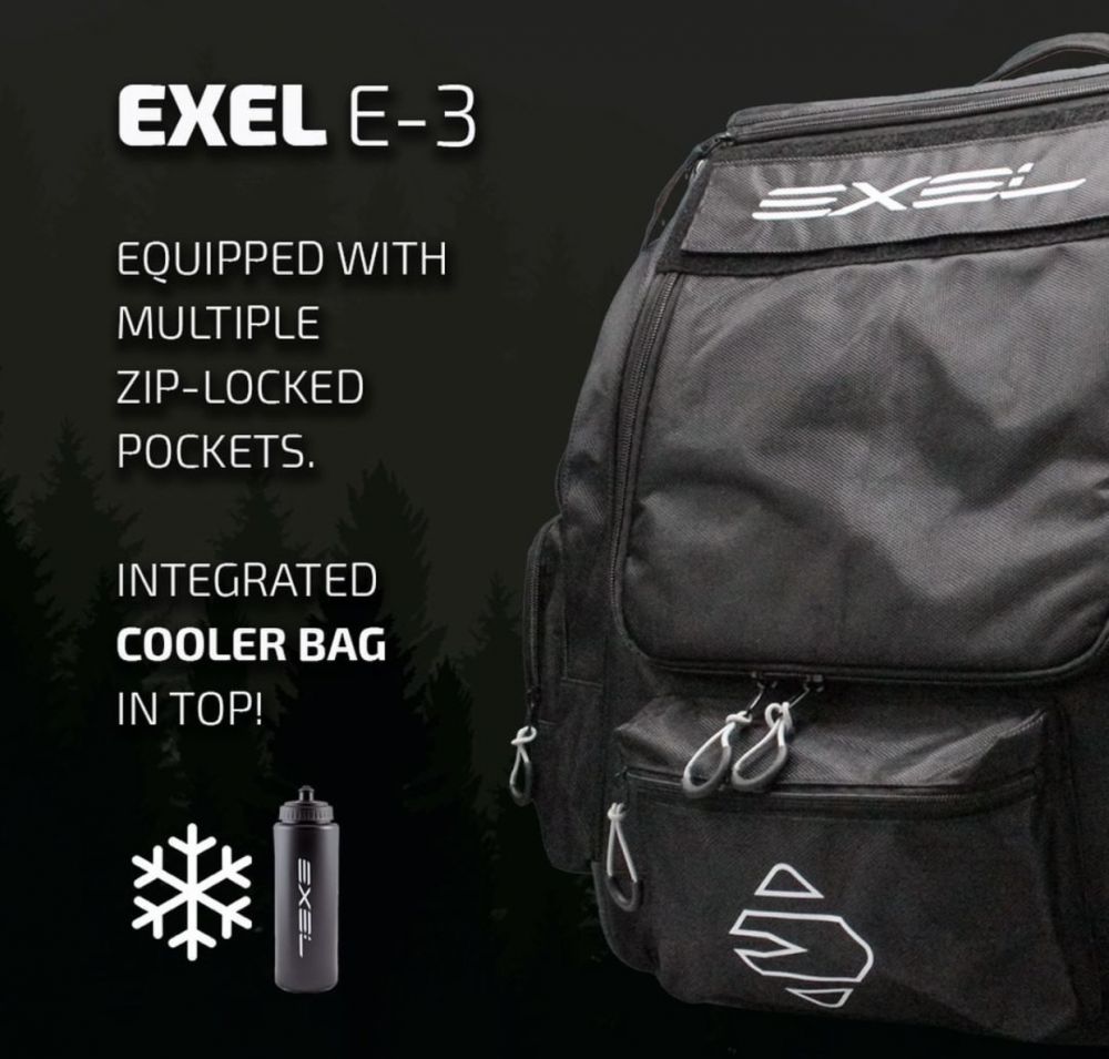 E – 3 reppu Exelin isoin reppu ja se on saatavilla kolmella eri värivaihtoehdolla. Repun päätaskuun mahtuu noin 22 kiekkoa. Isoihin