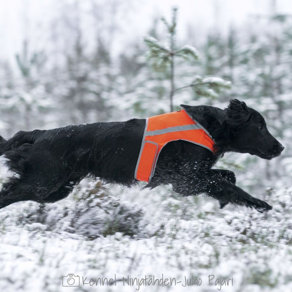 FINNERO ATTE on koiran heijastava huomioliivi, joka lisää näkyvyyttä ulkoillessa niin metsässä kuin lenkkipolullakin.