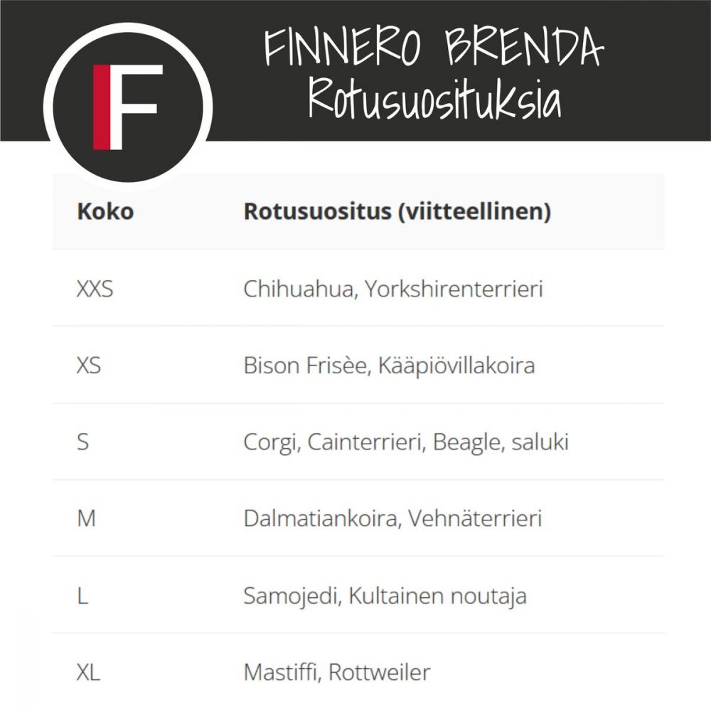 Alta näet BRENDA juoksuhousujen mitat ja suuntaa-antavat rotusuositukset.