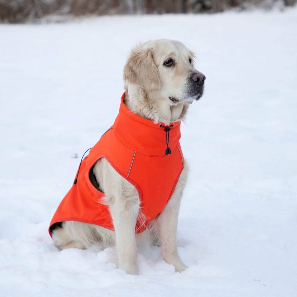 FINNERO SPORT softshell-takki on loistava valinta koiran ulkoiluun. Sateelta ja tuulelta suojaavassa takissa on pehmeä fleecevuori, joka lämmittää suuret lihasryhmät; selän, rinnan ja reisilihaksia. Kaulus suojaa niskaa ja sitä voidaan säätää sopivaksi joustavalla heijastimellisella nyörillä. Vatsakappale lämmittää niin rintakehää kuin vatsaakin, jossa on lisänä pieni joustava kiristys. Pukeminen on nopeaa ja vaivatonta, sillä selkäpuolen vetoketju aukeaa kokonaan.