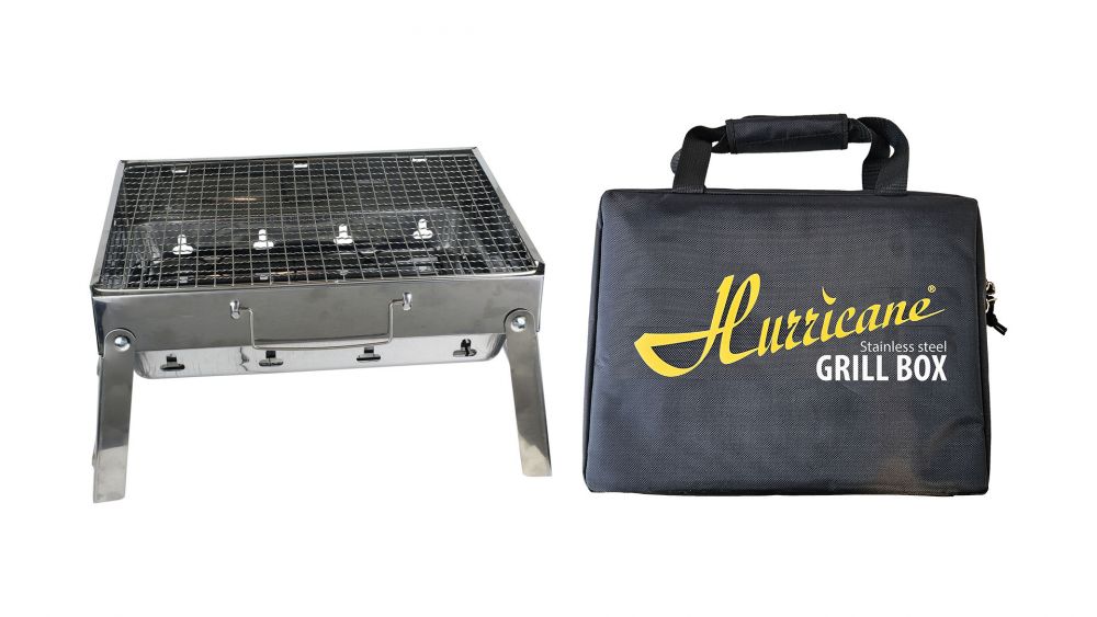 Hurricane Grill Box on valmistettu ruostumattomasta teräksestä, mikä tekee siitä kestävän, mutta silti noin 1,5 kg painoisena helpon kantaa repussa, auton tavaratilassa tai veneen säilytystilassa.