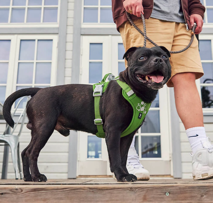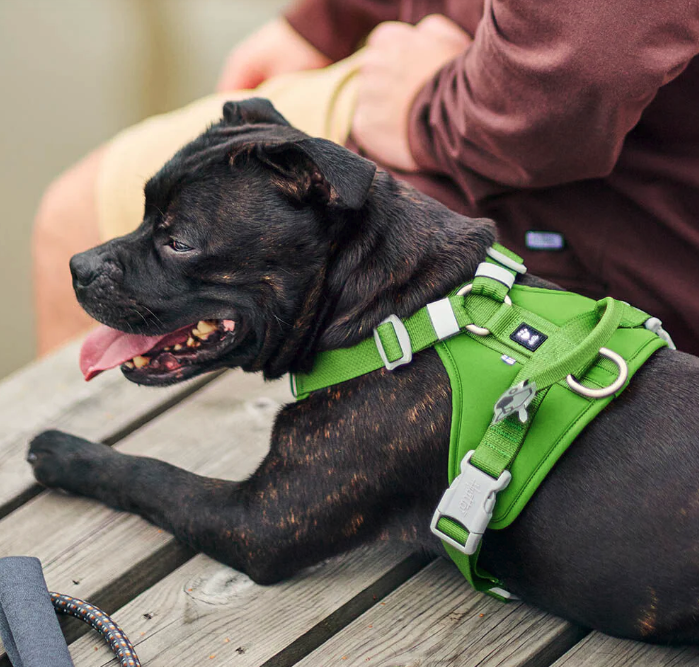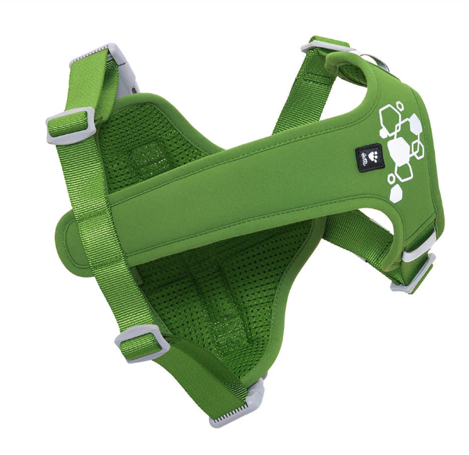 Tuotteen pintakangas on kierrätettyä polyesteriä. Vuorin hengittävä verkkoneulos ei hankaa tai hiosta koiraa. Päivitimme valjaan metalliosat ja nauhat kevyen kestäviin osiin. Kaikkien kriittisten kohtien kestävyys on varmistettu erikoistikkauksilla ja testattu vetolujuustesteillä.