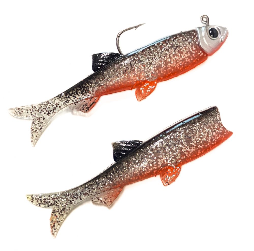 Jigipaketti sisältää 5 jigiä ja yhden 4g painoisen pikkukalan pään muotoisen jigipään.