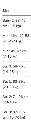 Kokoihin 0, 1, 2, 3 ja 4: aseta neljä sormea etujalkojen taakse ja mittaa rinnan ympärys siitä kohdasta.