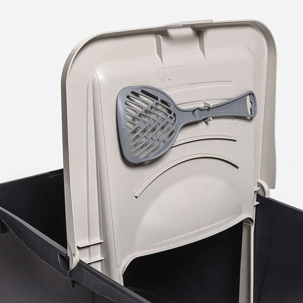 Kattosisäänkäynnillä varustettu laatikko sopii erinomaisesti talouksiin, joissa on sekä koiria että kissoja: jätökset ja hiekka pysyvät laatikossa koiran ulottumattomissa. Tyylikäs, ajaton ulkonäkö sopii moneen kotiin.