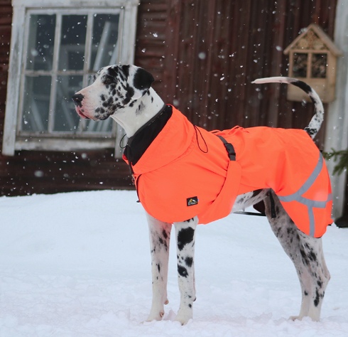 Hyvä takki on istuva ja mahdollistaa normaalin liikkeen - kuin koiralla ei olisi takkia lainkaan! Kivalo Ohto suojaa kauttaaltaan koiran rungon niskasta häntään, jolloin herkimmät kehonosat pysyvät kuivina ja vilu ja joillekin koirille varsin ikävä "märkä tunne" ei ota valtaa. Helmassa on pituutta niin edessä kuin takana, jolloin vesi valuu maahan suojaten kastumiselta tärkeät raajojen suuret lihakset. Rintakehää suojaa oma kappaleensa, joka kiinnittyy vyöllä selän päälle.