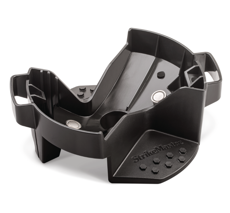 Magneettinen teräsuoja StrikeMaster Lite-Flite kairaan. Turvallinen ja helppokäyttöinen toiminta ilman käsiä. Irrota teräsuoja laittamalla jalkasi suojan astinlaudalle ja nosta kaira ylös. Kiinnitä teräsuoja ohjaamalla kaira teräsuojan päälle ja paina kaira alas lukitusta varten. VAROITUS: Kairan teräpalat ovat erittäin teräviä. Käsittele niitä varoen asentaessasi teriä tai teräsuojusta.