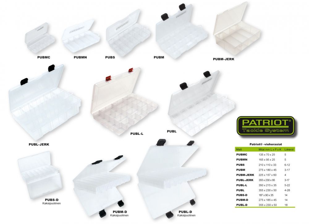 • Valmistettu jiginkestävästä joustavasta muoviseoksesta.• Korkeat PUBM-JERK ja PUBL-H rasiat suunniteltu erityisesti jerkeille.