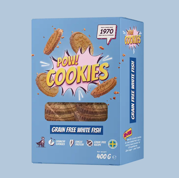 POW! Cookies on terveellisen ruokavalion täydennysravinto. Kaikki koirat ovat yksilöllisiä, joten ruokintamäärä riippuu koirasi iästä ja aktiivisuustasosta. Huolehdi, että koirallasi on aina puhdasta vettä saatavilla. Säilytä kuivassa ja viileässä ja sulje pussi säilytyksen ajaksi.