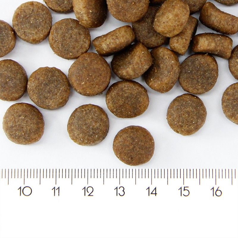 Ravintoaineet: Raakaproteiini 24 %, raakarasva 14 %, raakakuitu 2,5 %, raakatuhka 8 %, kosteus 8 %, omega 6 0,9 %, omega 3 2,9 %, kalsium 1,8 %, fosfori 1,1 %.