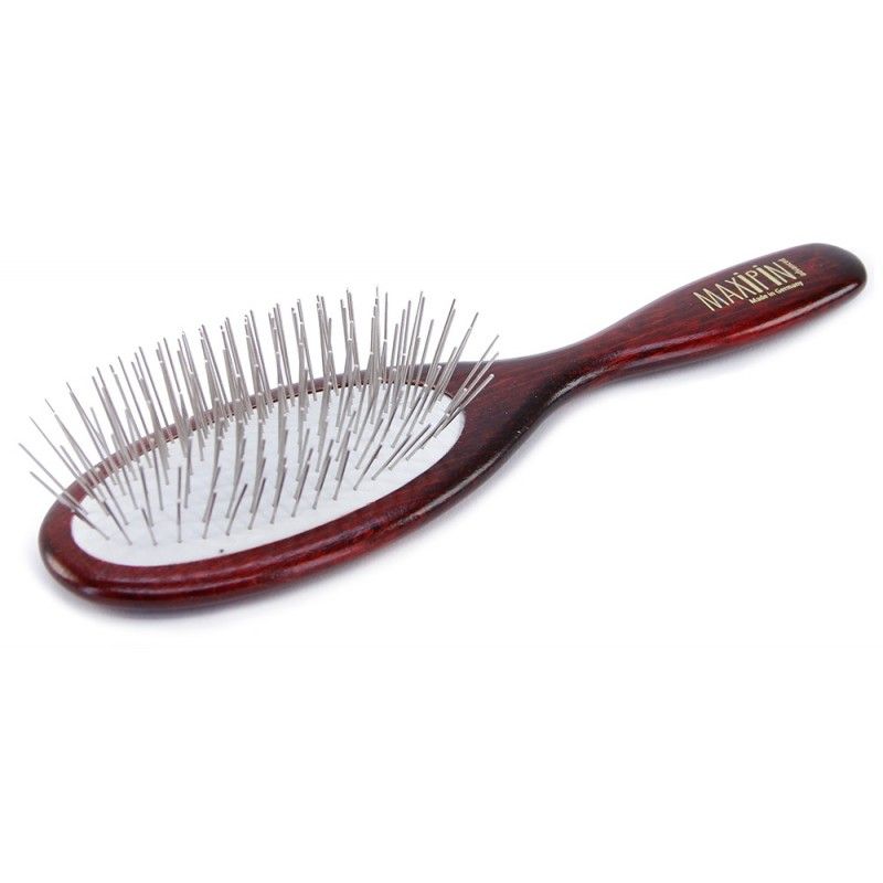 Piikkiharja pehmeällä kumityynyllä. Pitkät (25 mm), nupittomat piikit ulottuvat pohjavillarotujen paksun turkin läpi ja selvittävät turkin kauttaaltaan. Tyylikäs, muotoiltu puuvarsi, josta saa hyvän otteen. Harjan koko: 23 x 6,5 cm.