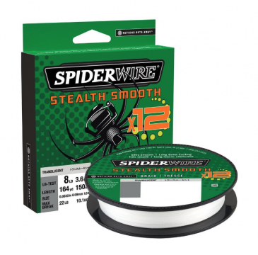 SpiderWire® Stealth® Smooth 12 Braid is tightly woven with 12 PE fibers to create a tight, round braid that is strong and sensitive. It is silky smooth, thin and soft, causing it to be quiet through the guides.