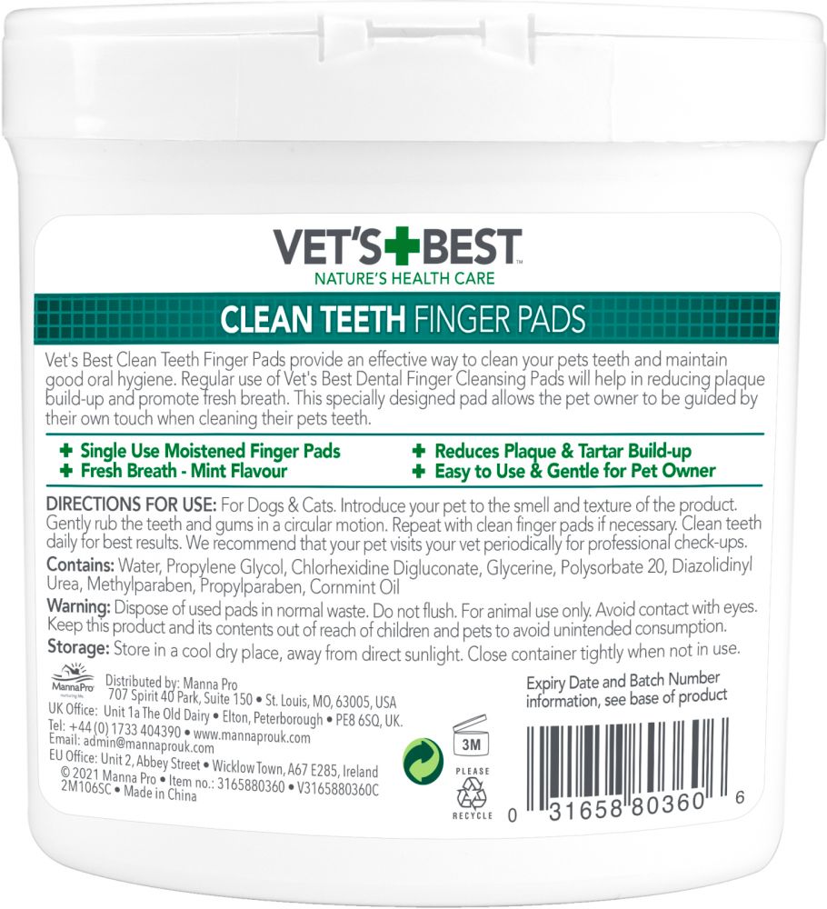 Niissä on uritettu pinta, joka auttaa poistamaan plakkia ja ruokajäämiä hampaiden pinnoilta. Vet’s Best Clean -sormityynyt sopivat päivittäiseen hammashoitoon, ja niitä voidaan käyttää joko hammastahnan kanssa tai ilman, oman ja koirasi tarpeiden mukaan.